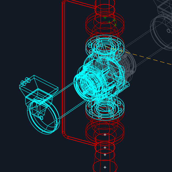 Insérer un conduit oblique sur un réseau est maintenant plus simple. Une fois qu’il est positionné, la commande AUTOFLUID adapte automatiquement les objets adjacents.